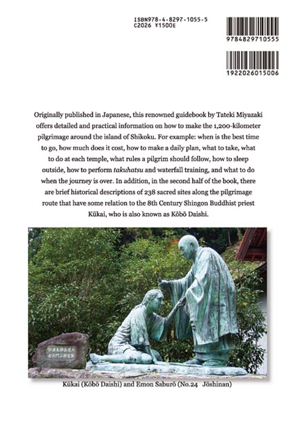 Originally published in Japanese, this renowned guidebook by Tateki Miyazaki offers detailed and practical information on how to make the 1,150-kilometer pilgrimage around the island of Shikoku. For example: when is the best time to go, how much does it cost, how to make a daily plan, what to take, what to do at each temple, what rules a pilgrim should follow, how to sleep outside, how to perform takuhatsu and waterfall training, and what to do when the journey is over. In addition, in the second half of the book, there are brief historical descriptions of 238 sacred sites along the pilgrimage route that have some relation to the 8th Century Shingon Buddhist priest Kukai, who is also known as Kobo Daishi.